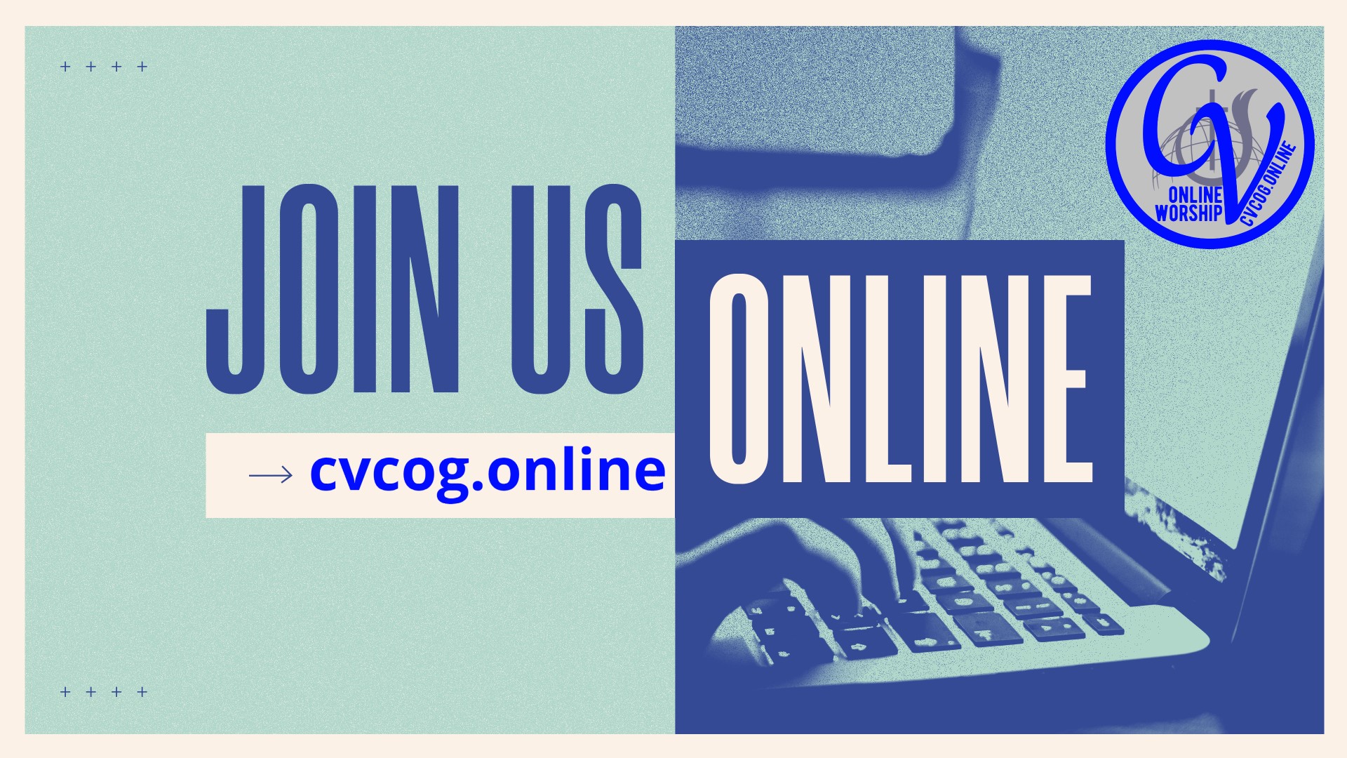 Want to join us on LIVE FEED? Join our ONLINE WORSHIP PLATFORM at https://cvcog.online. This platform is not associated with any Social Media. You can view this platform from any mobile device, your computer and even your Roku TV (search for CVCOG). Text the keyword ONLINE or click the graphic.